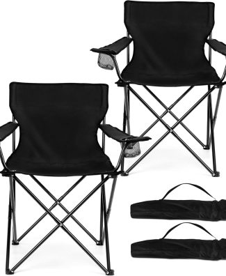 HaSteeL Foldable Camping Chair Set of 2, Folding Camp Chairs for Adults, Large Portable Lawn Chair for Outdoors Fishing, Hiking, Travel, Picnic, Beach, Supports 275lbs & Include Storage Bags (Black)